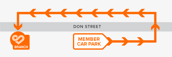 As part of the ongoing Invercargill branch building work, there is currently no direct access to the branch from the member car park. You are still able to use the car park; however, you will need to exit onto Don Street, follow the signage across the road and then back over to the main entrance.